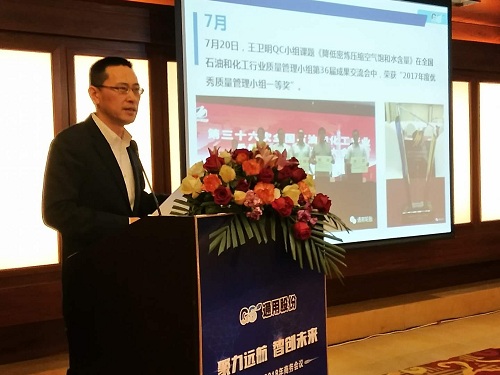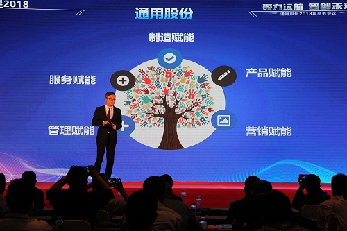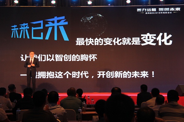 通用股份董事長(zhǎng)顧萃先生在會(huì)議上作了“賦能2018”的重要主題演講。回首2017,顧董對(duì)宏觀經(jīng)濟(jì)和行業(yè)情況進(jìn)行了生動(dòng)解讀。展望2018,顧董以“大、新、快、鏈”四個(gè)字闡述了當(dāng)下時(shí)代的發(fā)展趨勢(shì),探討了智能化以及創(chuàng)新思維對(duì)未來(lái)工業(yè)和生活的深遠(yuǎn)影響。通用股份將從“制造、產(chǎn)品、營(yíng)銷、管理、服務(wù)”五大賦能促進(jìn)變革發(fā)展,搶占先發(fā)優(yōu)勢(shì),智能制造升級(jí),全球化視野布局,全方位提高效率,做最好的自己。