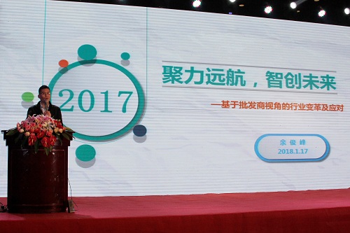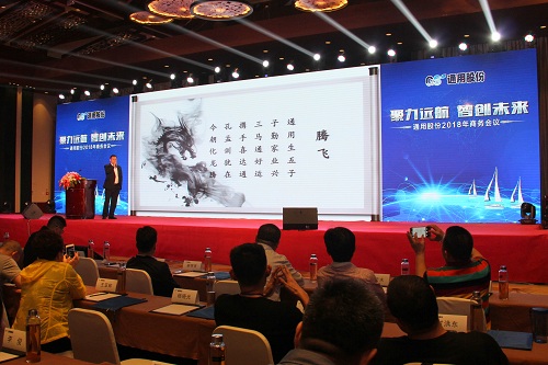 榮成市隆通貿(mào)易有限公司總經(jīng)理張黎明在大會(huì)上作了題為“騰飛 2018”的主題演講,他從定位、服務(wù)、客戶管理三個(gè)渠道入手,向與會(huì)者分享了成功的營(yíng)銷經(jīng)驗(yàn)和營(yíng)銷體系構(gòu)建案例,為代表們?nèi)蘸笤谑袌?chǎng)上攻城拔寨提供了可實(shí)施性的參考經(jīng)驗(yàn)。