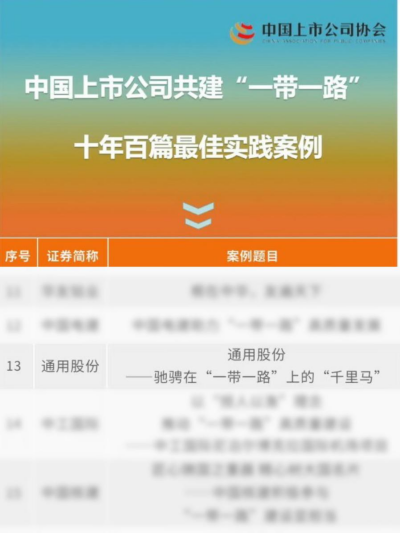 近日,中國上市公司協(xié)會發(fā)布《中國上市公司共建“一帶一路”十年百篇最佳實(shí)踐案例》,紅豆集團(tuán)控股子公司通用股份(601500.SH)的實(shí)踐案例《馳騁在“一帶一路”上的千里馬》實(shí)力“出圈”成功入選。