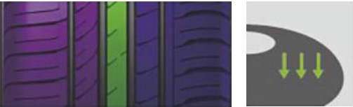 胎面非對稱的花紋設(shè)計,既確保了優(yōu)異的彎道抓著力又分散了轉(zhuǎn)向時產(chǎn)生的接地壓力。