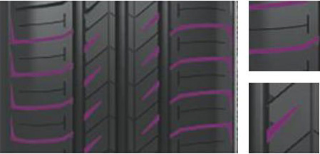 三條優化寬度的縱向排水溝保障了輪胎的濕地排水性能,有效防止了輪胎的側向水滑。